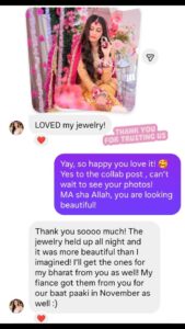 Jabeen provided excellent customer service ! The gajray and garlands were absolutely stunning. She took the time to help me prepare my order and also discussed what will look nice as in options to enhance my outfits. Her delivery charges are reasonable and she provided timely service. I highly highly highly recommend using A&A flowers for your flower needs. My wedding looks were exceptional because of them!
